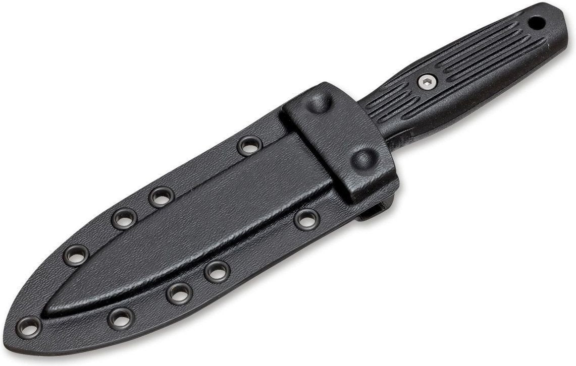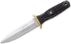 The smaller and thus more handy version of the Applegate-Fairbairn has been developed according to the same concept as its big brother. Fiberglass-reinforced Delrin handle with integrated stainless steel weights, brass cross-guard and 440C blade steel. The blade has on the one side a typical double conical dagger grind and on the other side a hollow grind. Delivery includes a Kydex sheath and a large Tek-Lok.