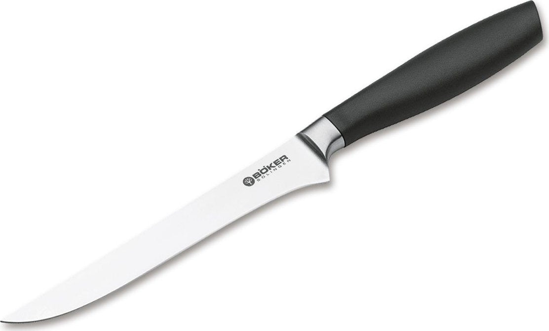 We harnessed their decades of experience, excellent know-how and finely-honed every day sense for the requirements and needs of cooking and kitchen enthusiasts in our product development of the Boker Core series, combined with our almost 150 years of experience as a Solingen Knife Manufactory. The results is a product with dynamic lines, excellent handling and breathtaking cutting capability that earned the quality rating "recommended by leading retailers".
