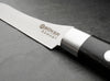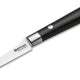 The Boker Damascus Black Kitchen Knife line combines traditionally Japanese handles made of black Plywood with razor-sharp blades made of stainless Damascus with 37 layers of steel, characterized by a beautiful grain. The extremely high-impact core of the Damascus blade consists of the high-performance VG-10 steel. The noticeable sharpness when cutting is breathtaking and makes cooking an experience. The Japanese design of the knife handle with the matted stainless steel clamps gives the line its special character.