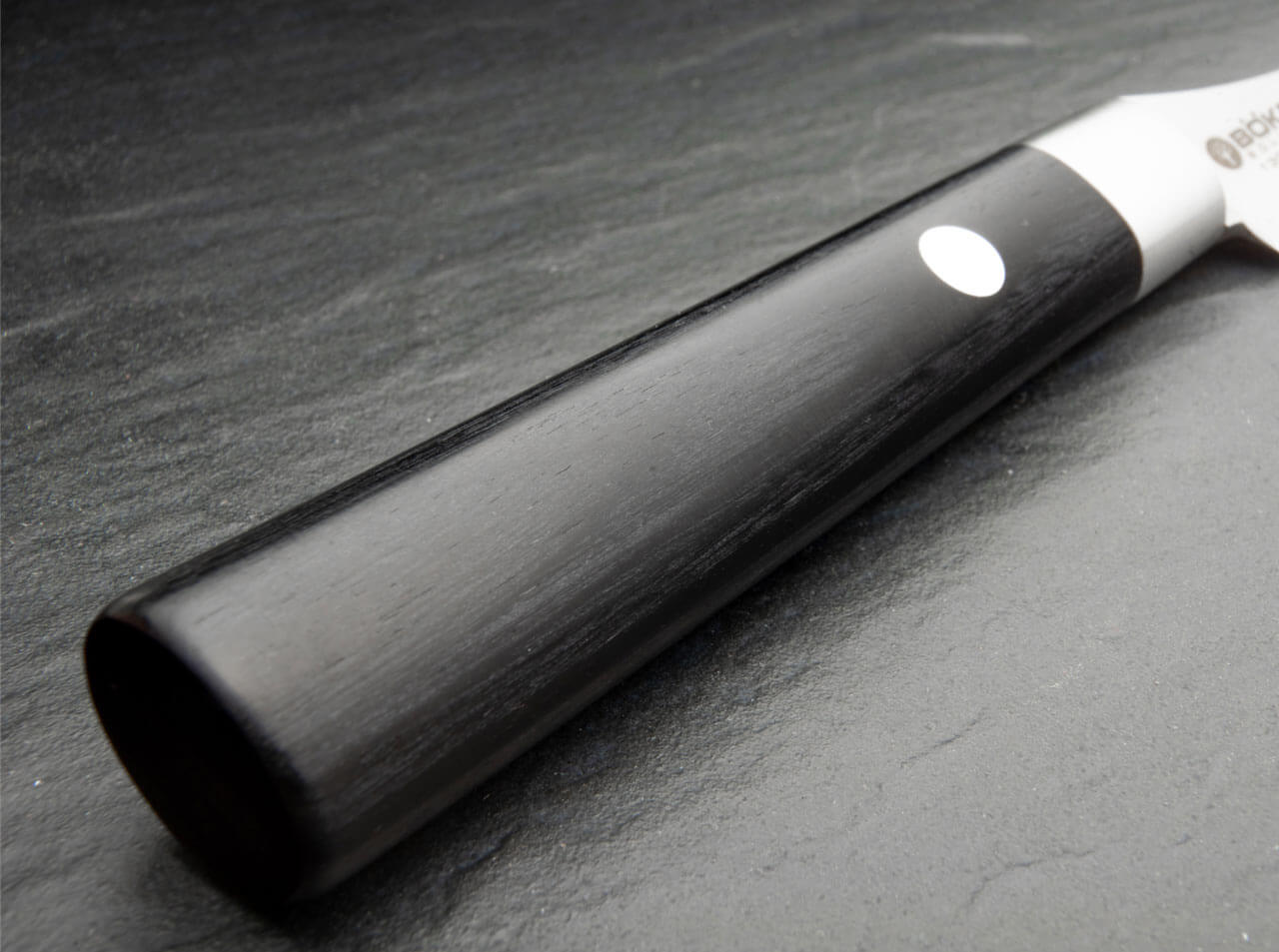 Top chefs are not the only ones who swear by Japanese kitchen knives – they are also popular with many ambitious amateur chefs. The advantages of the knives with Japanese handles and traditional construction of the blade with push tang and stainless steel ferrule are patently obvious, because they can cut delicate foods without squashing or bruising. When cutting herbs, for example, the fine cut hardly releases their oils. So, the aromatics are not lost and you can even avoid tears when cutting onions. The sense of sharpness during cutting is breathtaking and makes cooking a true experience.
