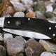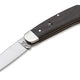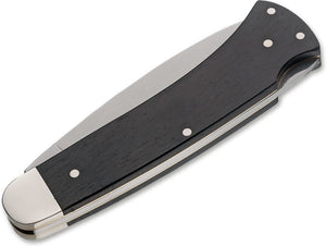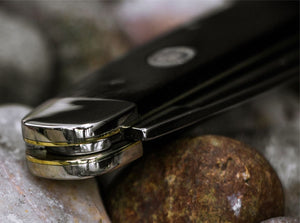Even today, traditional pocket knives continue to enjoy unbroken popularity, and the demand for classic useful everyday helpers is higher than ever before. This character is underlined at the Boker Fellow Ebony by the choice of the not stainless carbon steel C75 for the blade. The fine structure of non-stainless steel allows for a very sharp blade that is easy to sharpen compared to chrome steel, which many users appreciate. Carbon steel is recognizable by its gray-blue patina that just comes with using the knife and tells connoisseurs a lot about the properties of this steel. The patina also creates a protective layer on the surface of the blade. The handle scales are made of fine certified imported Ebony, which with its dark appearance has always been regarded as a special handle material and in combination with the shimmering shine of the nickel silver bolsters embodies the essence of this knife in the most exquisite way.