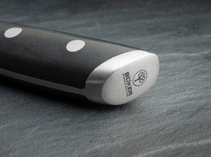 The Utility Knife is a very handy mixture of the Chef's Knife and the Paring Knife. The most common application of the Utility Knife in the kitchen is the processing of fruits and vegetables, which can be both peeled and cut. But even smaller pieces of fish and meat can be cut easily. Since the Knife, which is sharpened on both sides, is very frequently used, it shouldn't be missing in any kitchen.