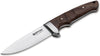 The Boker Integral II is the compact version of the full Integral, just as sturdy and die-forged from a single piece of steel. The rugged blade and excellent ergonomics of the handle scales make the knife perfect for hunting tasks and more. The conical tang and hand-ground finger choils highlight the sophisticated craftsmanship and offer a much more comfortable grip. The scales consist of carefully selected pieces of domestic walnut. The scales are precision-milled to minimize production tolerances. The blade is made from the reliable outdoor material 440C and equipped with a flat grind that offers great stability even for heavy-duty tasks. Comes with a high-quality leather sheath.