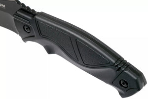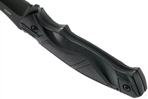 The Magnum Advance Pro Fixed Blade offers the same strong design features and materials as the All Black Pro Folder, though this one is a sturdy fixed-blade knife with a full tang. The handy size of the 11.3 cm blade of stainless steel 440C makes the knife a popular choice with the one-man-one-knife crowd. The MOLLE compatible nylon sheath with added gear pocket and leg strap ticks all boxes. Puncture protection and snap tab are additional safety features.