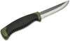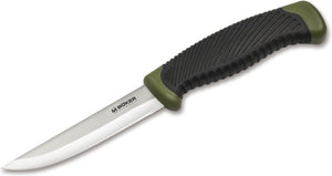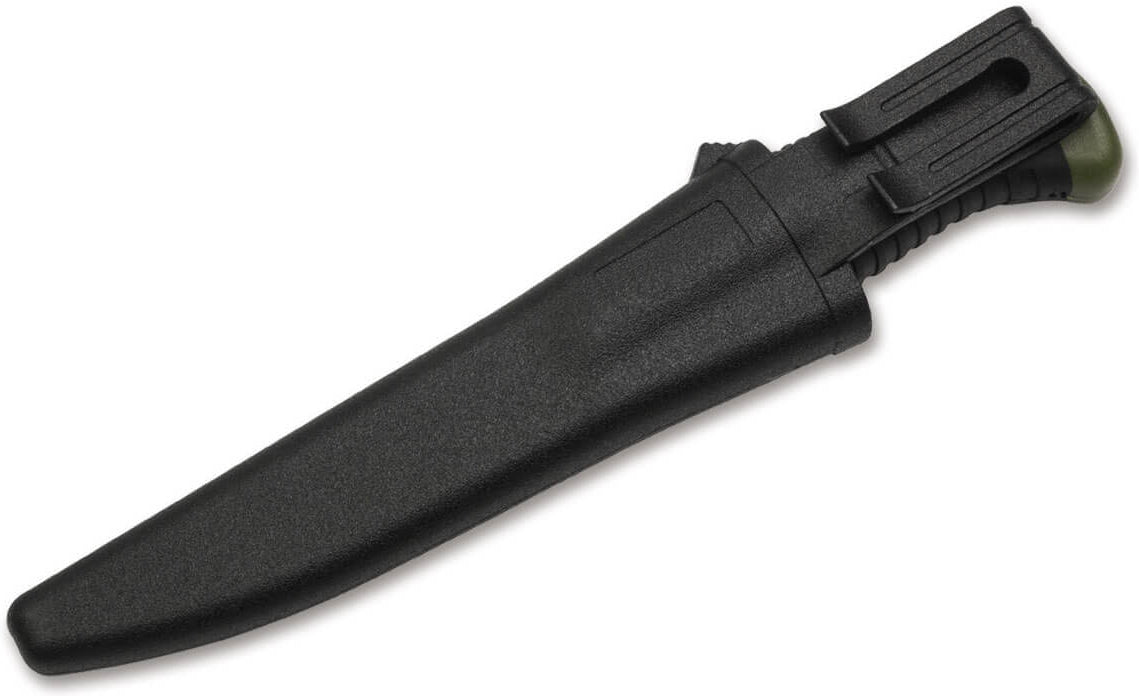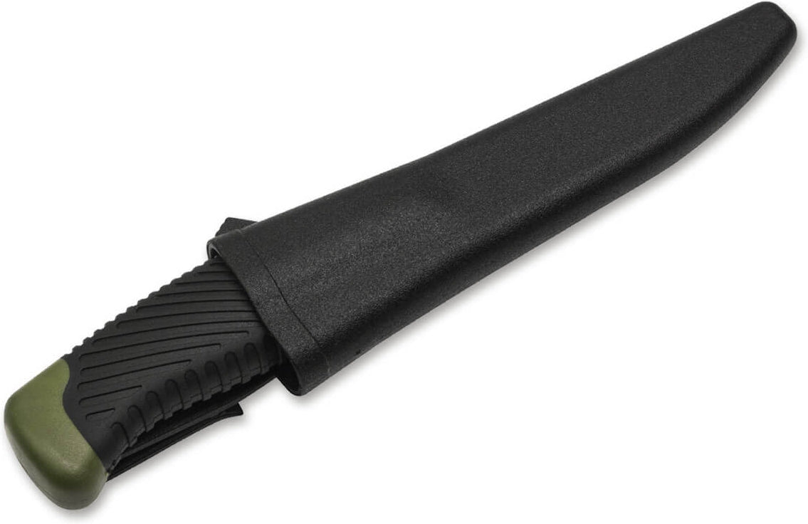 The Magnum Falun is the established workhorse of Scandinavian forests, coasts and lakes. The olive green plastic handle with non-slip textured rubber coating makes the knife not only the perfect companion for anglers and fishermen, but is also suitable for hunting or military use thanks to the muted colour scheme. The 420 stainless steel blade is inseparable from the break-proof plastic handle. Indestructible, versatile, hygienic, inexpensive. The puncture and cut resistant plastic quiver sheath features an integrated clip and provides a snug and secure fit for the knife. A drainage hole also ensures that moisture cannot collect in the sheath.