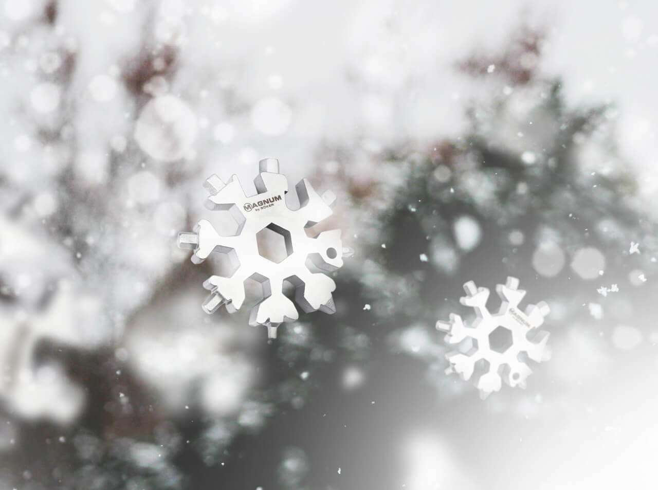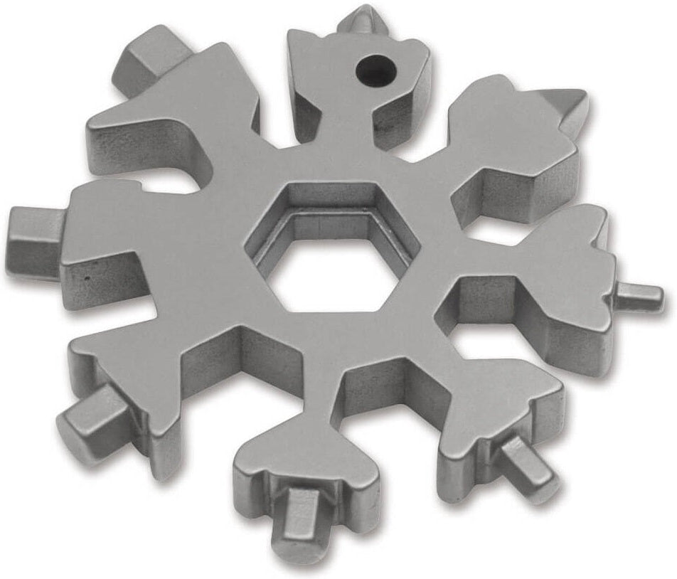 The massive Magnum Snow Crystal Tool is only recognizable as a practical multi-tool at second glance. The tool, reminiscent of a snowflake, is made of more than eight millimeters thick steel and combines a whole 18 functions in a very small space. It is made of stainless 3Cr13. It is equipped with six Allen wrenches in the millimeter sizes 3 / 4 / 5 / 6 / 7 / 8, seven hexagon socket wrenches in the millimeter sizes 8 / 9 / 10 / 11 / 12 / 13 / 14 / 16, a slotted screwdriver and a Phillips screwdriver, as well as a bottle opener and a wire stripper. The practical lanyard hole can also be used as a wire bender. All by itself, the various tools seem to create the shape of a snow crystal, which is associated with happy childhood memories.