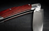 The Boker Plus Caballero is a compact classic pocket knife with wooden handle scales that is light enough for any trouser or vest pocket. The satinized drop-point blade consists of D2 and is secured with a new patented backlock based on a space-saving wire bail. The elegant two-handed knife can do without any modern opening mechanism, opening instead with a nail nick. Brushed stainless steel bolsters and scales made from dark Cocobolo wood complete the design of the clipless Caballero. With a lanyard hole and high-quality nylon case for storage.