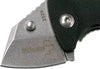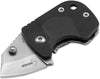 As is typical for Chad Los Banos, his smallest pocket knife ever nevertheless features sophisticated ergonomics and high utility. Even this dwarf with barely 7 cm of overall length can be held securely and firmly in order to cut uncooperative packaging straps, cartons, and anything else one may come across down to size. It features a steel frame lock with zytel front scales and a removable clip (tip up).