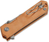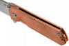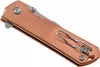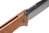The ball-bearing Harpoon blade made of D2 has a stonewash finish and opens with spring support via flipper or thumb stud. The blade is secured by a robust stainless linerlock. The copper handle fits securely in the hand in terms of shape and weight and shows a characteristic patina after only a short time. Includes a lanyard hole, clip (tip-up/r) and high-quality nylon case for storage.