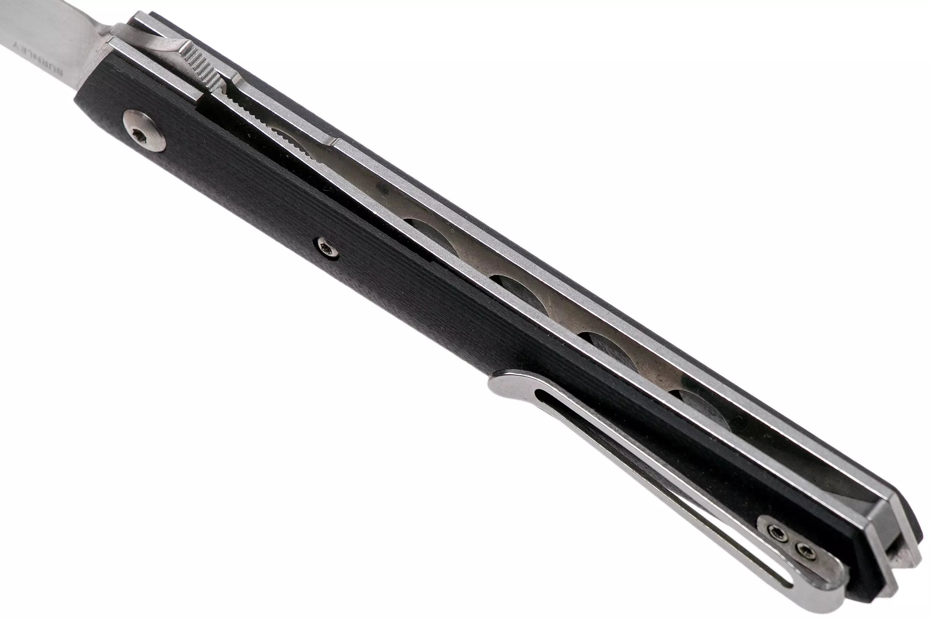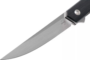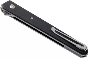 The Boker Plus Kwaiken Air G10 by Lucas Burnley extends the dynasty of the successful Kwaiken family by an elegant lightweight version. With its straightforward and practical shape, this modern pocket knife has become a true icon. The clean lines and slim design of this model have been further optimised to achieve an uncompromising reduction in weight, although the knife still holds the complete blade when closed. The flipper provides intuitive operation and additional safety, while the linerlock securely locks the VG-10 ball bearing blade with satin-finished hairline finish. The light-footedness of the Gentleman Folder is underlined by the handle scales made of resistant G10, which gives the knife a tactical appearance. With lanyard hole, detachable deep carry clip (tip-up/r) and high-quality nylon case for storage.