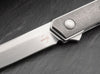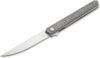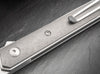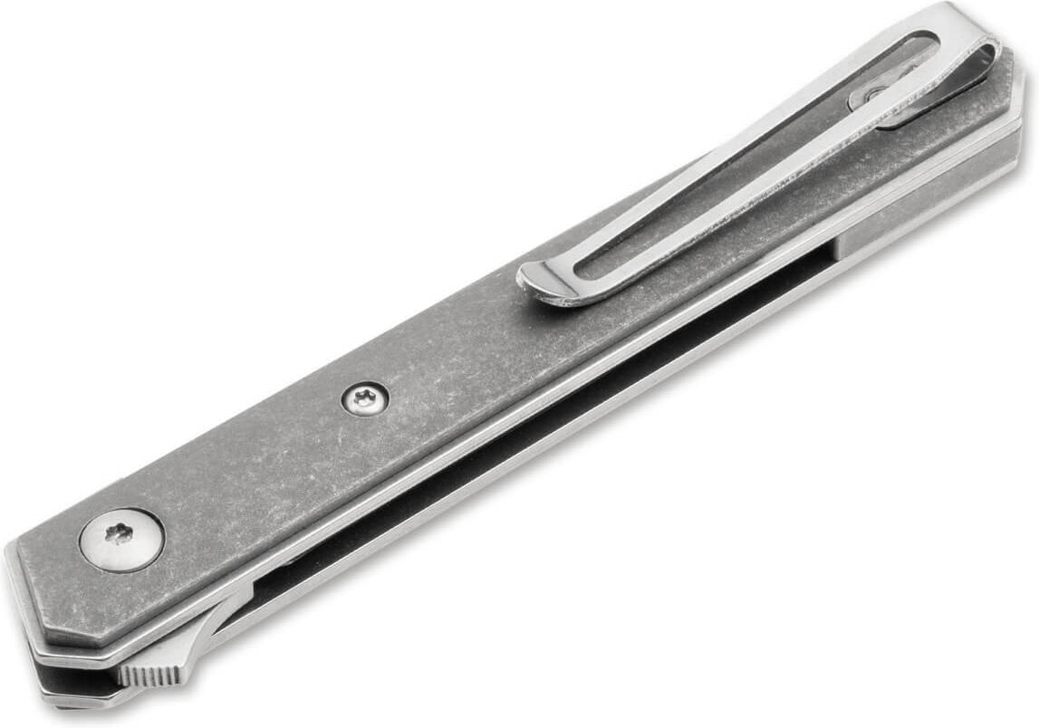 The slim design and the exclusive choice of materials make the Boker Plus Kwaiken Air a classy crossover between a gentleman's folder and a tactical knife. To make this bridging even easier, the Kwaiken Air Mini offers the same outstanding qualities as its big brother with significantly reduced and thus more pocket-friendly dimensions. With a straightforward and practical shape, the modern pocket knife has become a true icon. The clean lines and slim design have been further optimised for uncompromising weight reduction in the lightweight version, although the knife still holds the entire blade when closed. The flipper ensures intuitive operation and additional safety, while the linerlock securely locks the ball-bearing blade made of VG-10 with an impressive hairline finish. The lightness of the Gentleman Folder is underlined by the high-quality titanium handle scales, which give the knife an extremely modern look. Supplied with a lanyard hole, a removable deep-carry clip (tip-up/r) and a high-quality nylon pouch for storage.