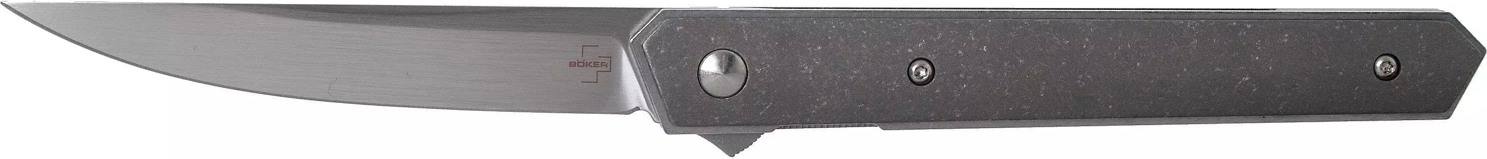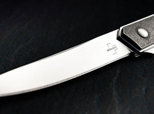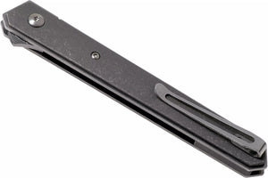 The Boker Plus Kwaiken Air Titan by Lucas Burnley extends the dynasty of the successful Kwaiken family by an elegant lightweight version. With its straightforward and practical shape, this modern pocket knife has become a true icon. The clean lines and slim design of this model have been further optimised to achieve an uncompromising reduction in weight, although the knife still holds the complete blade when closed. The flipper provides intuitive operation and additional safety, while the linerlock securely locks the VG-10 ball bearing blade with satin-finished Hairline finish. The Gentleman Folder's light-footedness is underlined by the high-quality titanium handle scales, which gives the knife an extremely modern look. With lanyard hole, detachable deep carry clip (tip-up/r) and high-quality nylon case for storage.