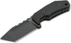 The fixed knife convinces with its compact size and a bulky Tanto blade made of D2, which is coated with a dark grey titanium coating and a pronounced hollow groove. The jimpings on the back of the blade promises a safe thumb rest for difficult cutting work. Despite the wrath of the gods, the well-shaped and partially serrated G10 handle always lies securely in the hand. Using a standard 3D printer, you can easily print out alternative handle scales in a wide variety of shapes, colours and materials yourself. Includes lanyard hole, belt clip and high-quality Kydex sheath.