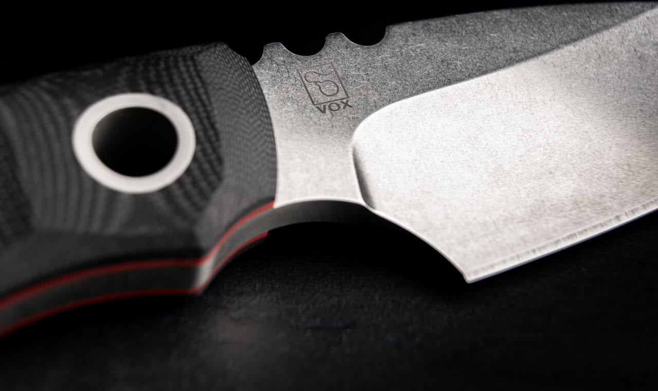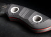 With its thick blade, the Boker Plus PryMate Pro, designed by the Danish knifemaker Jesper Voxnaes, can master any challenge and is perfect even for bigger cutting jobs. The knife's relatively compact dimensions emphasize the unmatched sturdiness of the D2 full-tang construction. Ergonomic handle scales milled from Micarta as well as deep thumb jimpings offer an excellent grip, while the red fiber layer creates an appealing visual contrast to the massive blade spine. The hollow grind of the stonewash blade creates a balanced cutting profile despite the unusual size. The fitted Kydex sheath can be attached to the enclosed belt adapter for several carry variations. The characteristic hollow rivets do double duty as a lanyard hole.