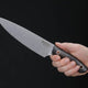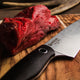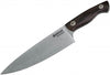 Boker Saga owes its high strength to the full-tang design, which extends over the full length of the knife (in the same manner as on many hunting knives) from the blade tip to the pommel. The optimized cutting performance is not only guaranteed by the full flat grind of the blade with stonewash finish, but also by selecting 440C as the blade steel, which far surpasses the edge-holding and corrosion-resistance of conventional chef's knife steels. This surface finish is achieved in a specialized grinding process and is characterized by outstanding gliding properties through the cutting material, thus enhancing the already superior cutting performance. In addition, the micro-structure of the stonewash finish is extremely scratch-resistant, since these are typically visually absorbed by the texture. A special note is achieved by the large hollow rivets, the unmistakable mark of Jesper Voxnaes. The Chef's Knife is one of the most important knives in the kitchen and belongs to the basic equipment. It has a slightly wider and longer blade than the Utility Knife. The slim tip is also suitable for cutting onions or small vegetables. Thanks to its length it can also be used as a meat knife. It is also easy to process large vegetables.