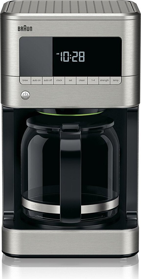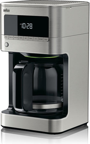 Once the aroma of fresh-brewed coffee fills the kitchen, a cup of goodness awaits with the Braun BrewSense 12-cup Drip Coffee Maker, model KF7170SI featuring a stainless steel finish with an extra wide display. The PureFlavor system brews your coffee at exactly the right temperature and brewing time to extract the best flavor and aroma. Our years of brewing knowledge and attention to detail bring out the nuances of flavor that make for a satisfying coffee experience. For the ultimate in precision, the unique carafe lid seals in flavor and an anti-drip system allows you to pour any time during the brewing cycle. A fully automatic 24-hour programmable timer means your much-needed first cup of coffee will be waiting for you when you want it. Discover rich, fresh-brewed coffee every day, in the comfort of your own home, with Braun.