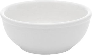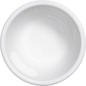 - A classic white round porcelain bowl with a 10 ounce capacity