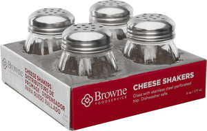 Browne 6 Oz Swirl Cheese Shakers (Set of 4) ) with Stainless Steel Cap – the epitome of functionality and style in enhancing your dining experience. Elevate your culinary presentations with these round cheese shakers that combine generous capacity with a touch of sophistication. Crafted to cater to your cheese dispensing needs, these shakers showcase a classic round design that complements a variety of dining setups. The 6 oz capacity ensures you have ample cheese to sprinkle, whether it's a casual meal or a lavish feast. The stainless-steel cap not only adds a sleek touch but also guarantees durability and easy maintenance. Its precision design ensures controlled dispensing, allowing you to garnish your dishes with precision and finesse. Whether it's pasta, pizza, or any dish that deserves a sprinkle of cheese, the Browne 6 Oz Round Cheese Shakers provide a stylish and efficient solution. Their rounded silhouette and stainless-steel cap effortlessly combine form and function, making them an indispensable addition to your dining arsenal. Elevate every dining moment with the Browne 6 Oz Round Cheese Shakers (4 Count) with Stainless Steel Cap. From casual to upscale dining, these shakers embody versatility and elegance, ensuring your culinary creations are perfectly seasoned every time.
