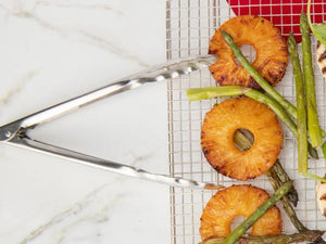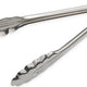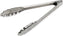 These utility tongs are constructed from stainless steel for durability in a commercial setting, making them easy to clean and resistant to corrosion. The scalloped edges make grabbing rounded foods, multiple pieces, and irregularly shaped food products easier. A coil spring makes one-handed operation of the tongs simple. The tongs are non-locking and are 7" long.