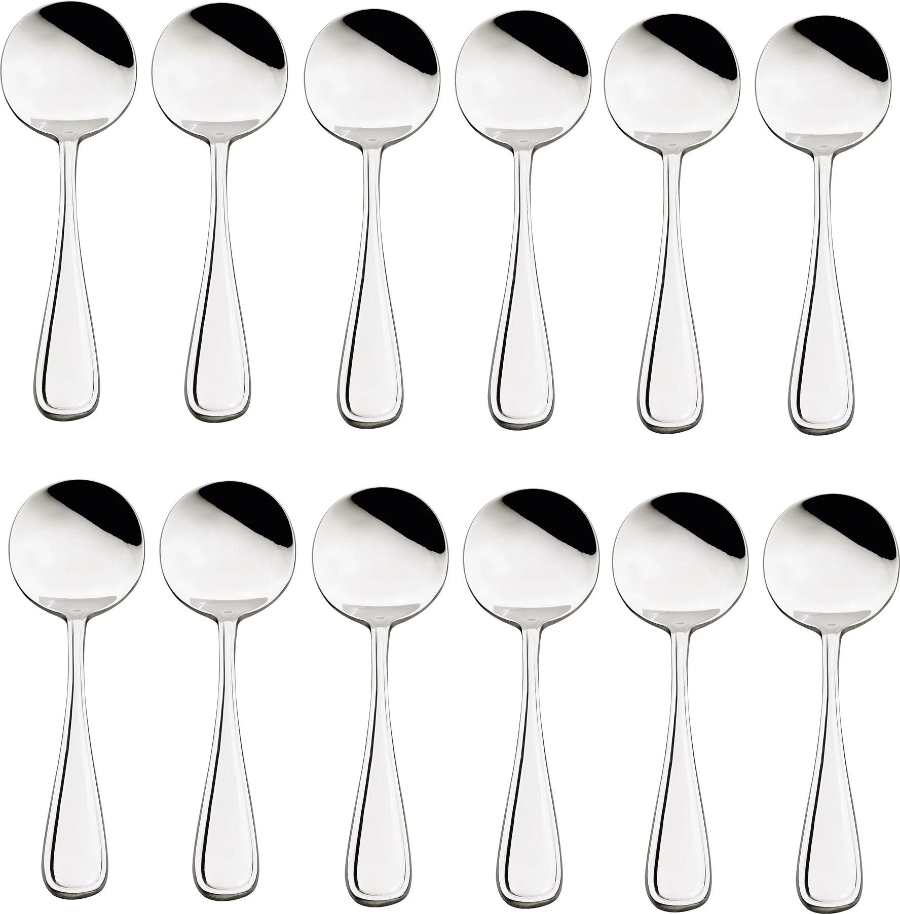 Browne - CELINE 7" Stainless Steel Round Soup Spoon, Pack of 12 - 502513