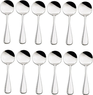 - Premium Stainless Steel Construction: Crafted from high-quality stainless steel, this round soup spoon not only exudes durability but also boasts resistance to rust and staining. It is built to withstand regular use while maintaining its polished appearance.