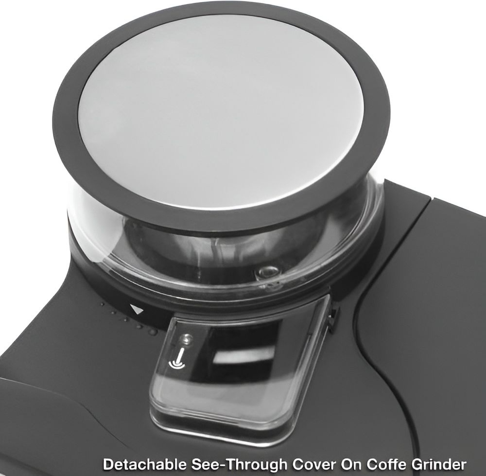- Detachable See-Through Cover: The detachable cover allows you to monitor the flow of ground coffee, simplifying cleaning of the grinder channel and ensuring effortless maintenance.