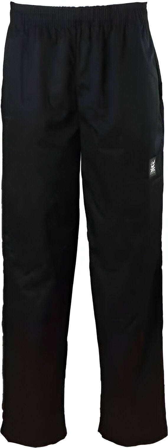 Ensure your kitchen staff looks and feels their best with the Chef Revival Poly-Cotton Black Comfy Fit Baggy Pant with 2" Elastic Waistband. Made from a breathable EZ-Blend™ poly-cotton material, these pants are designed to keep your staff cool and comfortable during long hours in a hot kitchen environment. The baggy fit provides ultimate flexibility, allowing your staff to move and bend freely during busy dinner services. The 2" elastic waistband with drawstring ensures a secure and adjustable fit, while the two side pockets and two rear pockets offer convenient storage for essential tools and personal items. These unisex chef pants are available in a wide range of sizes from XS to 8X, making them a versatile and reliable choice for all kitchen professionals.
