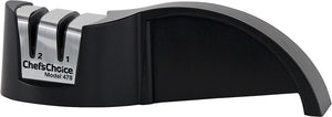 Introducing the Chef's Choice Black Diamond Hone 2-Stage Manual Knife Sharpener, Model 478. This compact and affordable sharpener combines elegant, contemporary styling with Chef's Choice technology, ensuring razor-sharp edges every time! It's perfect for kitchen, Santoku, light sports, and pocket knives. Incorporating separate sharpening and honing stages, the Model 478 creates super sharp edges that remain sharp for extended periods. The use of 100% diamond abrasives in both stages ensures the fastest manual sharpening with minimal metal removal, preserving the quality of your knives. Whether you're left or right-handed, this sharpener is designed for easy and safe use. Its compact size allows for convenient storage in any kitchen drawer, tackle, or tool box.