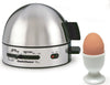 The unit has a lighted, on/off switch and an electronic timer with audible “ready” signal to alert you when the eggs are done. There is no need to touch hot eggs; the Model 810’s convenient egg tray lifts out with one hand for rinsing under cold water or carrying to the table. The elegant brushed stainless steel design is easy to clean—the non-stick coated water reservoir makes clean up a breeze. The lid and egg holder are both dishwasher safe.
