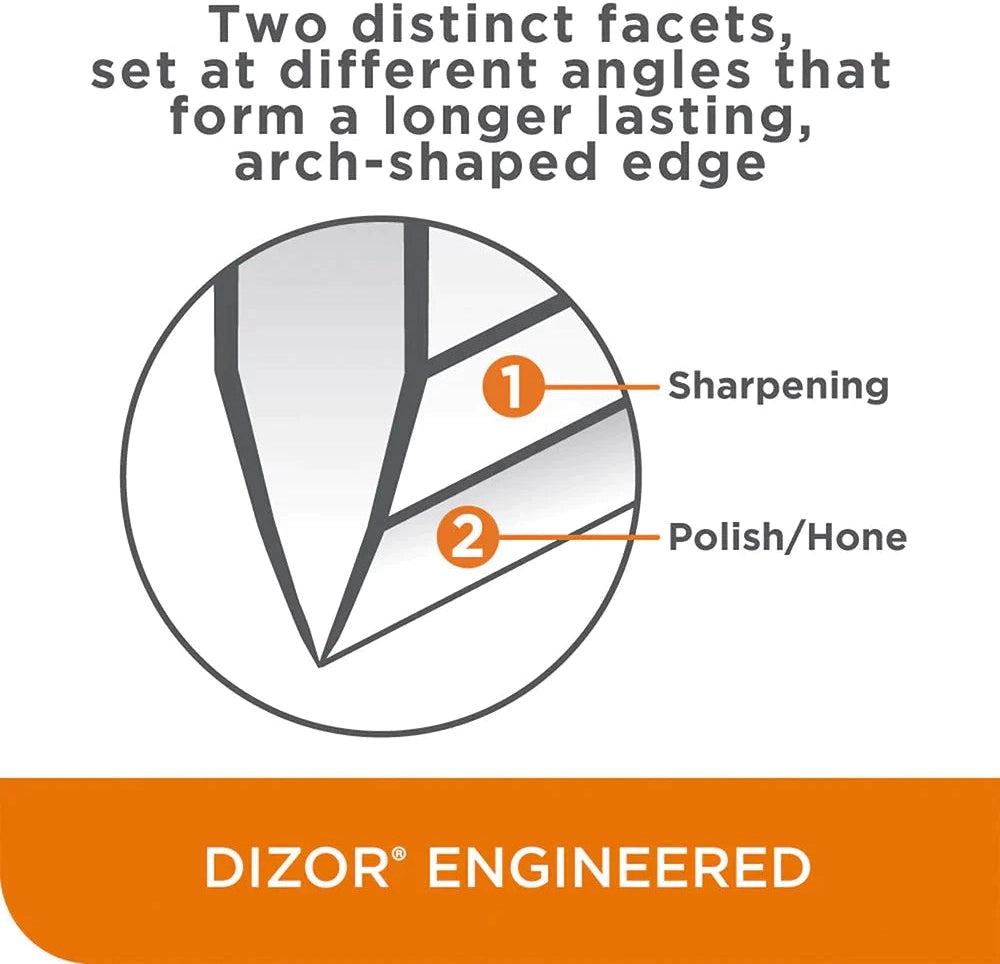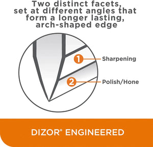 With its Dizor engineered technology, the Chef's Choice 1520 creates two distinct facets set at different angles, resulting in a sharper, more durable, arch-shaped edge. The first stage of sharpening caters to 15-degree straight edge knives, while the second stage accommodates 20-degree straight edge knives. And in the final stage, the patented Ultrastrop stropping disks deliver an unparalleled polished finish to both 15-degree and 20-degree knives, ensuring precision slicing like never before.