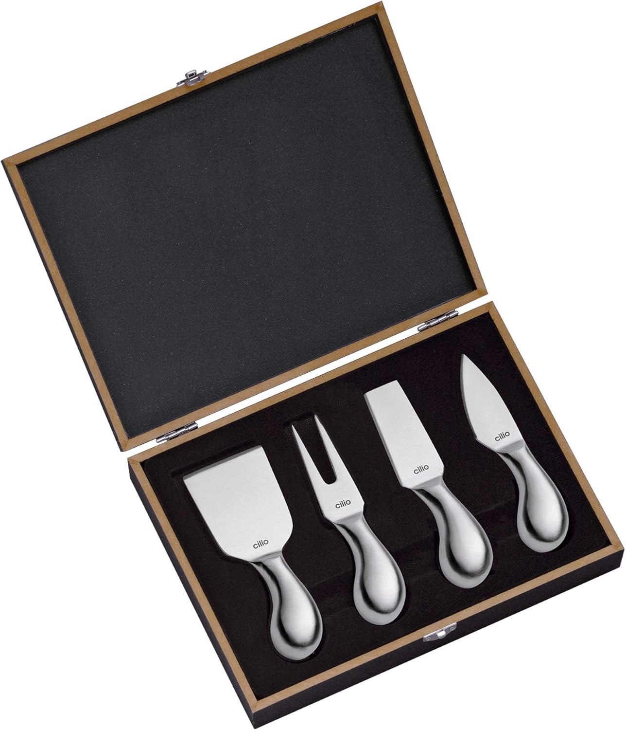 Cilio - 4 Pc Piave Brushed Stainless Steel Cheese Knife in Wooden Box - C294804