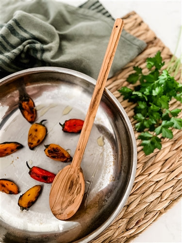 Each Toscana stirring spoon showcases the unique grain patterns and warm tones of olivewood, bringing a rustic yet elegant charm to your kitchen. Unlike metal or plastic utensils, this wooden spoon is gentle on non-stick cookware, preventing scratches and preserving the quality of your pots and pans.