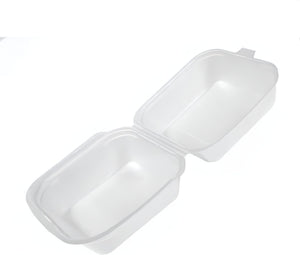 The white color of the foam container offers a clean and professional appearance, enhancing the overall presentation of your food. It provides a neutral background that allows your sandwich to take center stage, making it visually appealing for your customers. These foam hinged containers are lightweight yet sturdy, providing protection against crushing or damage. They are stackable, making them easy to store and transport, while also minimizing the use of storage space.