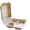 CKF Inc. - 9" x 9" x 3.2", FSTP6A3C 3 Compartment Bagasse Hinged Container, 200/cs - 37717