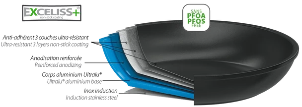 The Exceliss non-stick coating on this product is PFOA-free, ensuring a safe and healthy cooking experience. This high-quality coating prevents food from sticking and makes cleaning a breeze, while prioritizing your well-being by eliminating harmful chemicals.