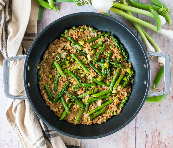 With its highly responsive and precise 3-ply construction, featuring an anodized aluminum core, this sauté pan ensures exceptional thermal efficiency, even heat distribution, and the absence of hot spots. Experience the joy of cooking on a surface that quickly and evenly heats up, providing excellent control and precision on the stovetop. Whether you're sautéing vegetables, searing meats, or simmering delicate sauces, this pan delivers consistent and outstanding results. The easy-to-grip and stay-cool handles enhance your cooking experience. Crafted from athermic solid stainless steel and perfectly fixed to the pan's body with stainless rivets, the handles remain cool to the touch, offering a comfortable and secure grip. Enjoy effortless maneuverability as you effortlessly toss, stir, and serve your culinary creations.
