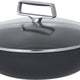 Included with the sauté pan is a lid, which helps trap heat, moisture, and flavors, allowing you to effortlessly simmer and braise your ingredients to perfection. The lid ensures optimal heat retention and allows you to monitor the cooking process with ease. Embrace the art of cooking with the Castel Pro Ultralu 1.9 Qt 2 Side Handles Non-Stick Sauté Pan with Lid. Immerse yourself in the expertise of renowned Michelin-starred chefs and unlock a new world of culinary possibilities. Experience the joy of cooking with a pan that delivers exceptional performance, precise control, and the ability to create flavorful and memorable dishes. Elevate your cooking to new heights with this meticulously designed sauté pan.