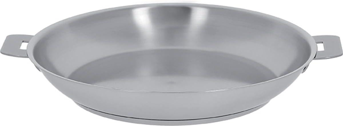 The Cristel 11" Silver Stainless Steel Frying Pan is a sleek and durable essential for everyday cooking. Expertly crafted in France from high-grade 18/10 stainless steel, it features a tri-ply thermo-diffusing base that ensures rapid and even heat distribution—ideal for sautéing, searing, or pan-frying on any stovetop, including induction. Its silver brushed finish delivers a modern, professional look, while the rivet-free interior promotes superior hygiene and easy cleaning. Compact and versatile, this frying pan is perfect for small portions, eggs, vegetables, or side dishes.