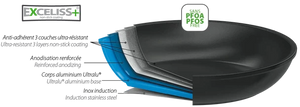 The Ultralu construction of this frying pan delivers exceptional heat conductivity and distribution for precise cooking results. Its lightweight yet durable design ensures easy handling and excellent cooking performance.