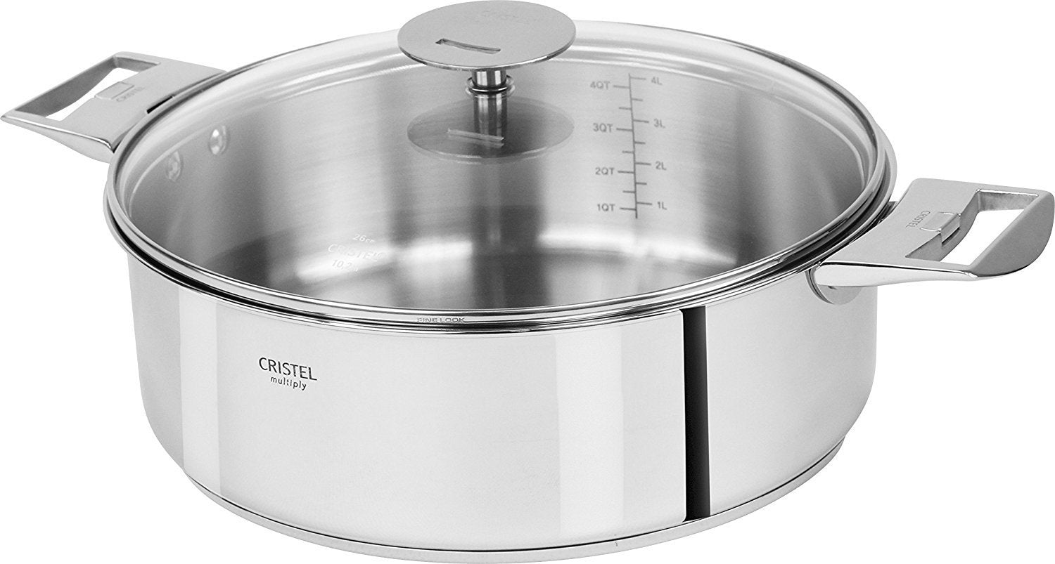 The Casteline 7 quart sauté pan is perfect for many sauteing tasks like searing or cooking meats or vegetables in liquid. You can also use it for deep frying. Because of the taller sides you can cook with more liquid and deglazing the pan is simple and avoids splashing. It features measurement markings in quarts and liters for use without a measuring cup. It stores easily nesting in larger CRISTEL sauté pans. Based on the unique construction, you can sear meats or even cook vegetables without oil or fat.