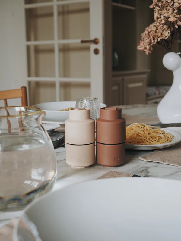 Bring modern Scandinavian charm to your kitchen with the CrushGrind BILLUND 12 cm Garlic Salt Pepper Grinder. Inspired by Denmark’s iconic building blocks, this grinder combines playful design with high-end functionality. Made from biocomposite material sourced from sustainably managed forests, each piece is unique in texture and appearance. The ceramic CrushGrind® mechanism, backed by a 25-year guarantee, efficiently grinds salt, pepper, and whole spices. Its upside-down design prevents spills and keeps countertops clean, while the adjustable grind size ensures perfect seasoning every time. Compact, lightweight, and easy to handle—this is a must-have for stylish and sustainable cooking.
