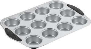 Sleek design and easy-grip silicone handles bring style and convenience to Cuisinart's quality nonstick bakeware. Contoured for standard oven mitts, two side grips on each piece of bakeware make removing delicious sweets and homemade breads from the oven safe and easy. Professional-branded premium nonstick interior and exterior ensure easy food release and effortless cleanup. The full line is constructed of heavy-gauge steel to provide even heat distribution and consistent baking results. Bake with confidence, with Cuisinart Easy Grip Non-Stick Bakeware.