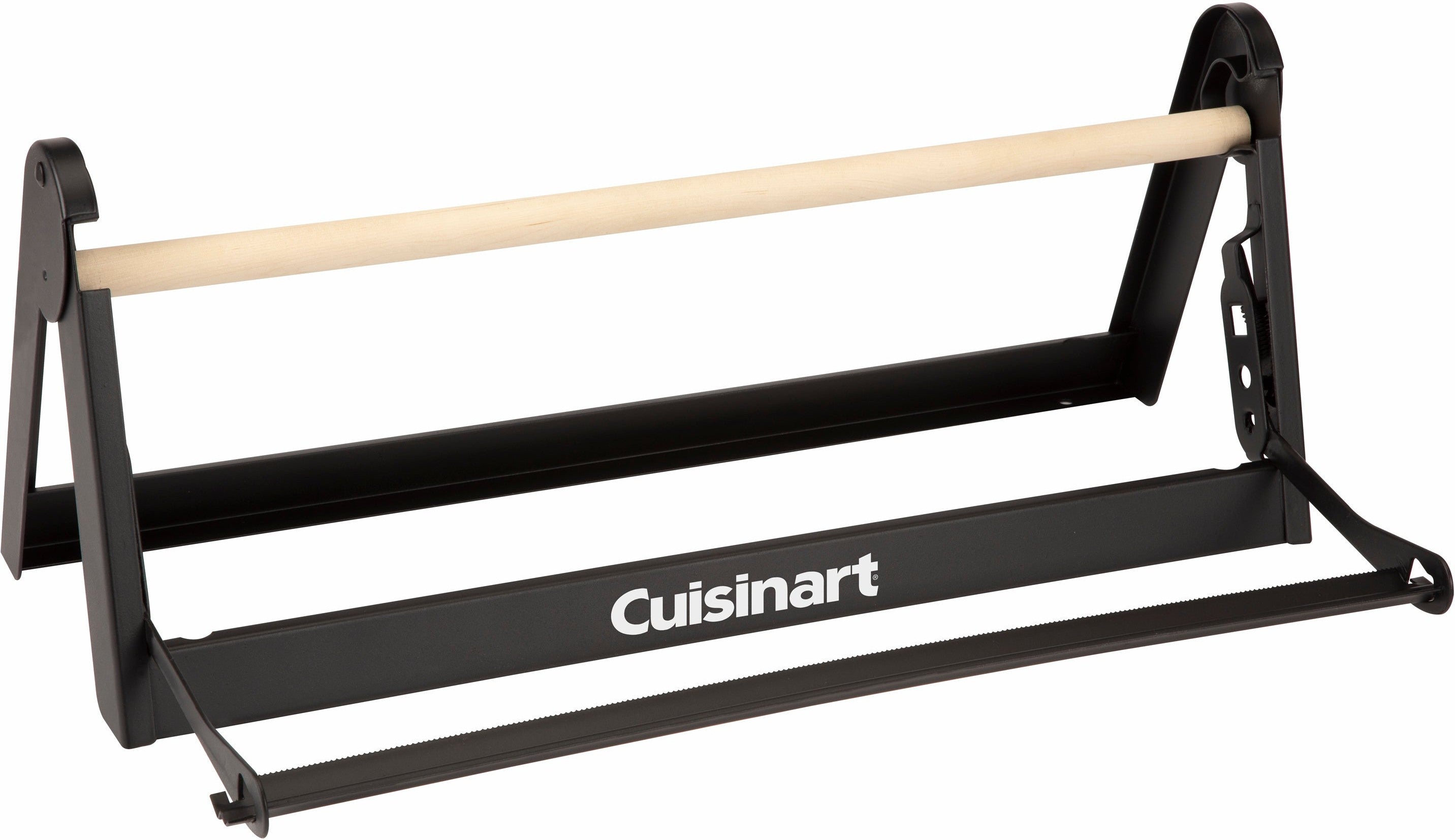 The Cuisinart 18” Butcher Paper Holder will take your smoking game to the next level! Growing in popularity among the BBQ community, butcher paper is an FDA-approved paper that helps keep your meat moist by sealing in the juices and keeping the meat tender. Butcher paper is breathable, compared to foil, so it allows additional smoke flavor in while preventing it from losing moisture towards the end of the smoke. This holder features a non-slip grip on the base, keeping it in place while tearing sheets. Roll changing is easy with the dowel holder and arms that lock into the open position. Arm lifts to keep the roll in place, the serrated edge allows straight, clean cuts every time, making wrapping meat quick and easy. The holder has a compact fold for easy storage when not in use. The Cuisinart 18” Butcher Paper Holder helps you pull butcher paper with confidence, making wrapping your meat easier than ever!