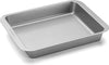 The Toaster Oven Bakeware line is constructed of heavy gauge steel construction to provide even heat distribution and consistent baking results. The nonstick interior and exterior ensure easy food release and cleanup, rolled edges prevent warping, and the entire line is dishwasher safe.