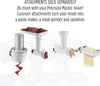 The Cuisinart Precision Master Stand Mixer features a 300-watt motor, die-cast metal construction, and 12-speeds that allow for nuance and excellence in performing a variety of preparation tasks. The unit's tilt-back head allows for easy access to its 4.5 Quart (4.25 L) Stainless Steel Bowl. Also included are the following: chef's whisk, dough hook, and flat mixing paddle. Additionally, you can purchase a variety of attachments for the unit: a pasta roller and cutter, pasta extruder, meat grinder, and spiralizer.