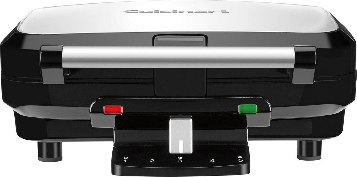 Take waffles beyond breakfast with the Cuisinart 4-slice Belgian Waffle Maker. This reliable, high-performance waffle iron has an elegant stainless steel top. It makes deep-pocket waffles that hold more toppings for more delicious options! Five-setting controls create customized results to meet all tastes. Green light signals when unit is ready to bake and when baking is done, eliminating cooking guesswork!