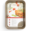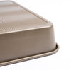 Cuisipro 15.5" Carbon Steel Roasting Pan from our Bakeware Collection – where durability meets exceptional performance. Say goodbye to the days of struggling to release your culinary creations from the pan, as this remarkable roasting pan boasts not one, but two premium layers of non-stick coating, ensuring your favorite dishes gracefully make their way onto your plate, not stuck to the pan! Crafted with precision and designed to elevate your baking and cooking experiences, this roasting pan features thick carbon steel construction. This not only guarantees outstanding performance but also provides the stability and durability that every home chef desires in their cookware. One of the standout features of the Cuisipro Carbon Steel Roasting Pan is its premium two-layer non-stick coating. This exceptional coating offers unparalleled release, making it ideal for both sweet and savory creations. You can confidently explore a wide range of recipes, knowing that your dishes will effortlessly slide out of the pan, leaving you with perfectly cooked results. The textured wave bottom of this roasting pan is a game-changer. It enhances airflow, ensuring even baking and browning across your culinary masterpieces. Say goodbye to unevenly cooked dishes and hello to perfection every time you cook or bake. Cleaning up after a delightful meal is made hassle-free with this roasting pan. Its straight side walls and seamless design make it easy to remove your creations and a breeze to clean. You can spend more time savoring your culinary creations and less time scrubbing pans.