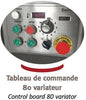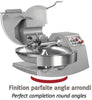 Titane 120 cutter is entirely manufactured in stainless steel with strong thickness . The knives are manufactured in stainless steel plates of strong thickness (2 to 3 cm). The lids have a double lining and they are isolated. The frame rigidity and the bowl quality allow to adjust the knives to the nearest of the bowl. The space between the bowl and the lid is minimum, which allows to make fine stuffings in a very short time, with a minimun heating of product. The lid and frame do not have angles, which are generally difficult to clean. The controls are in low voltage (24 volts). Adjustable knives speed thanks to its variator for Titane 120V + Mixing speed. Complies with CE standard.