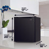 Perfect for tight spaces, the Danby 1.6 cu.ft. Black Compact Fridge is an excellent cooling solution for dorms, small apartments, cottages, or basement bars. Despite its compact size, this mini fridge offers a surprising amount of storage with a full-width wire shelf and integrated door shelving, including tall bottle storage. It features automatic defrost for easy maintenance and a mechanical thermostat for reliable temperature control. Designed with energy efficiency in mind, this ENERGY STAR® certified unit uses eco-friendly R600a refrigerant. The reversible door hinge and integrated door handle allow flexible placement and easy access wherever you choose to install it.