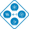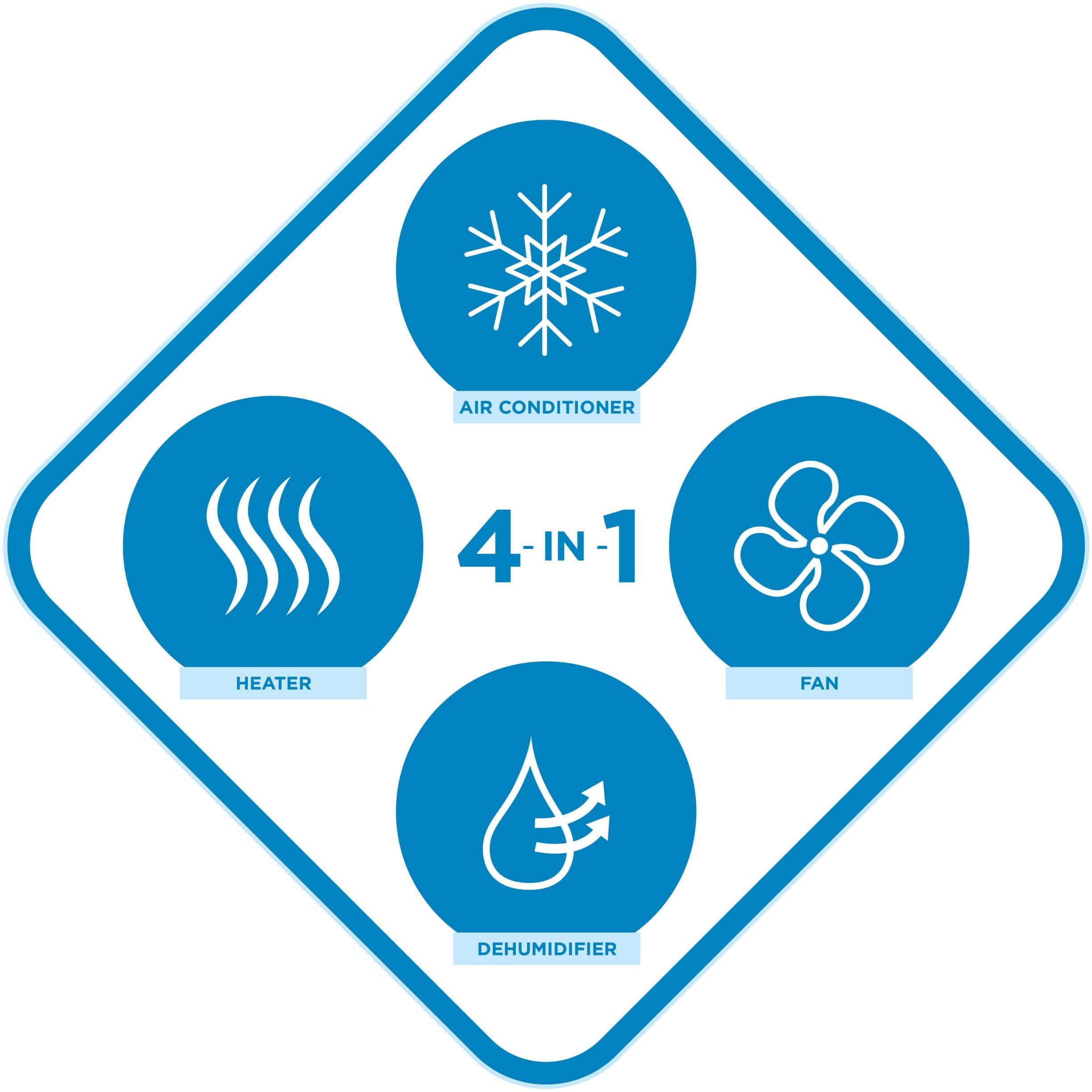 - 4-in-1 design: air conditioner, fan, dehumidifier, and heater for year-round use